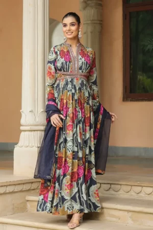 Quick viewSelect options This product has multiple variants. The options may be chosen on the product page Add to wishlistPure Chinon Full Sleeves High Low Pattern Designer Cut Anarkali (Pink)