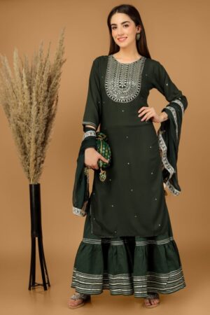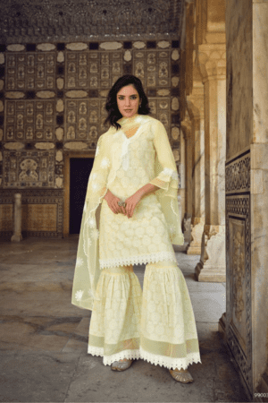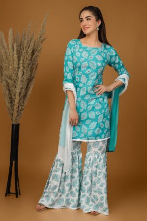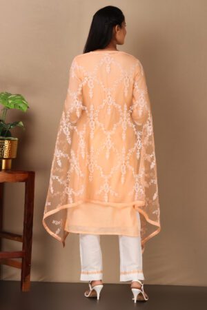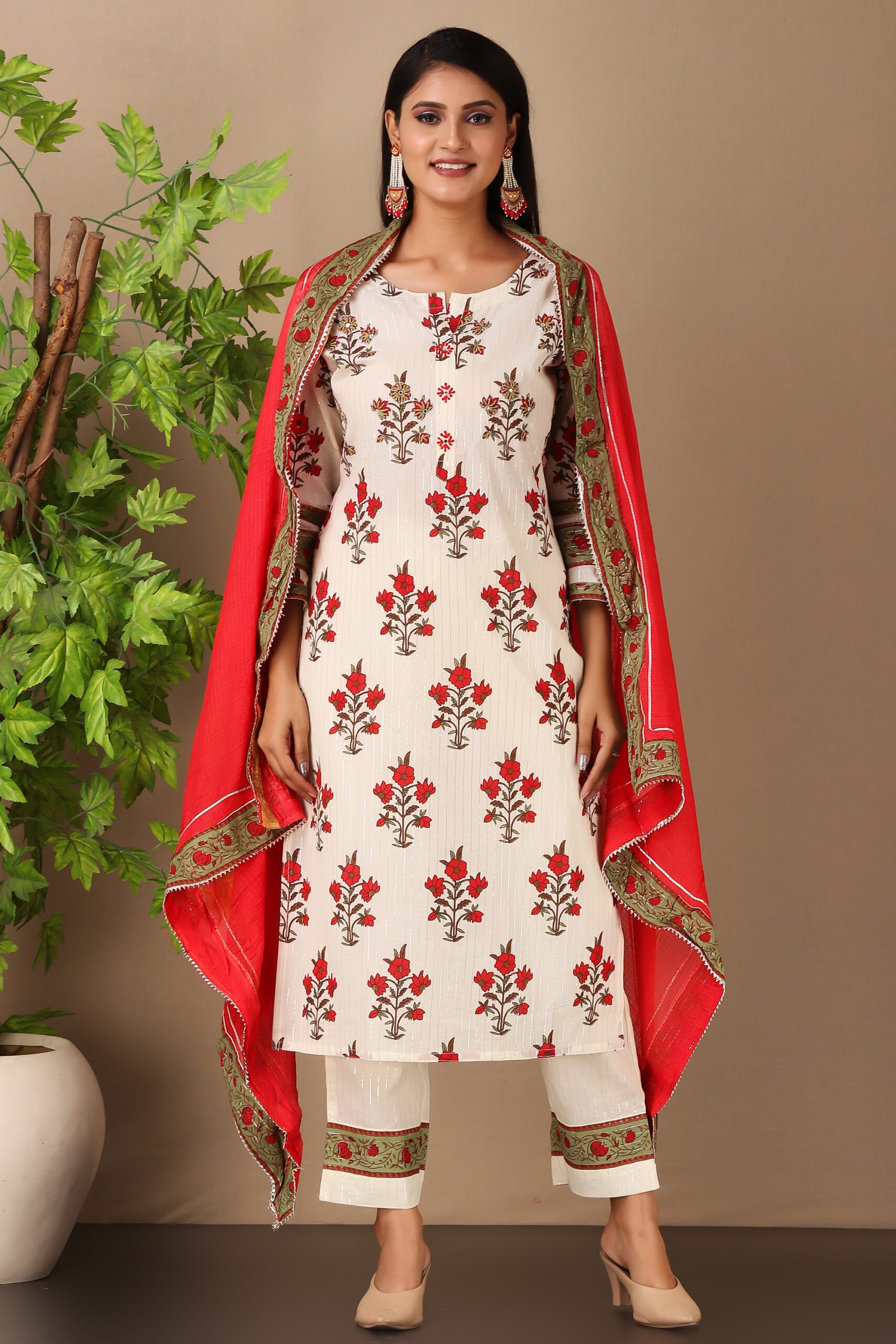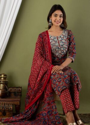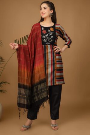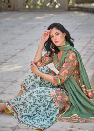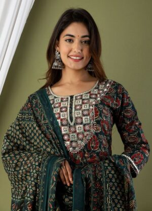 Pure cotton floral hand embroidered anarkali suit set with tassels