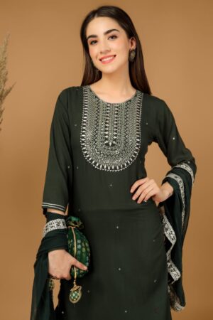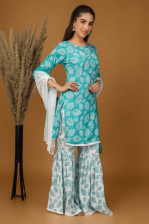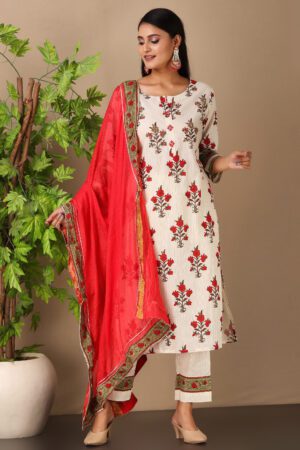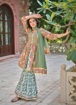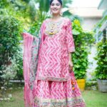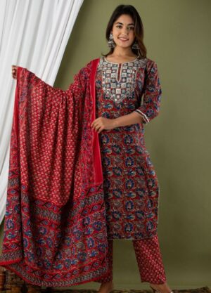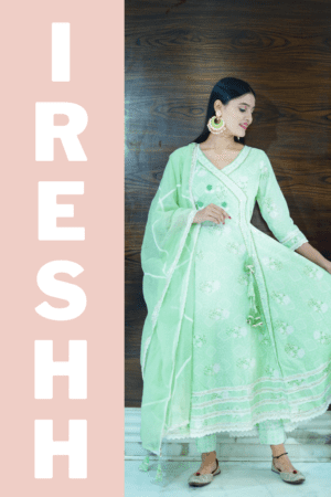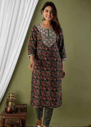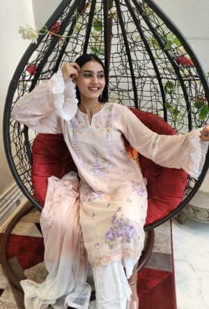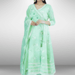Pure cotton floral hand embroidered anarkali suit set with tassels