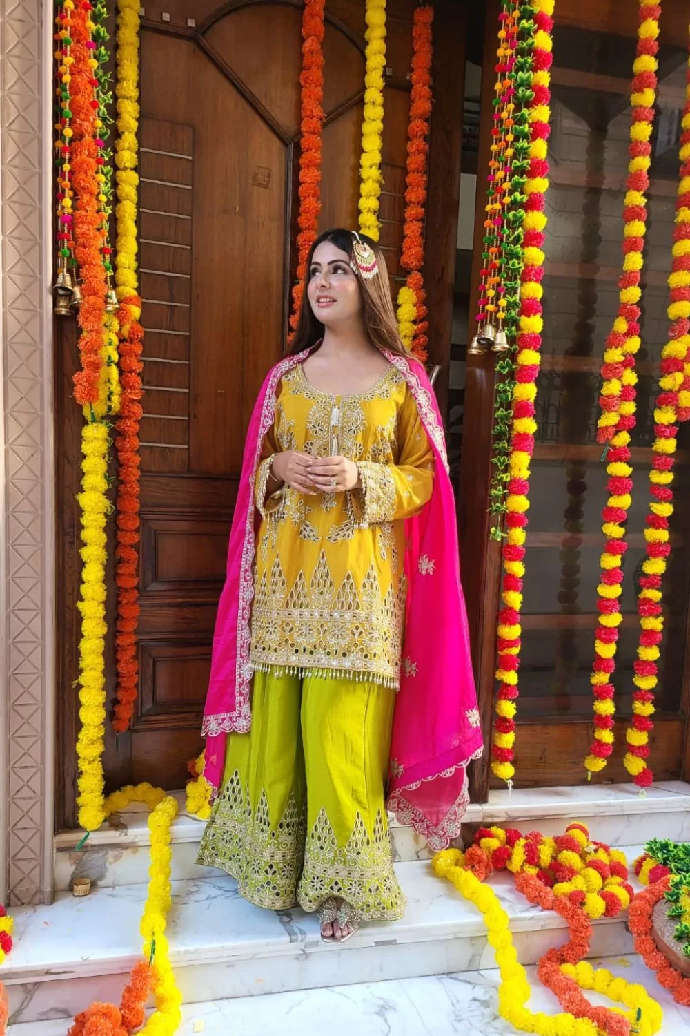 Chinon Full Hand Embroidered With Embellished Accessories With Lining Sharara