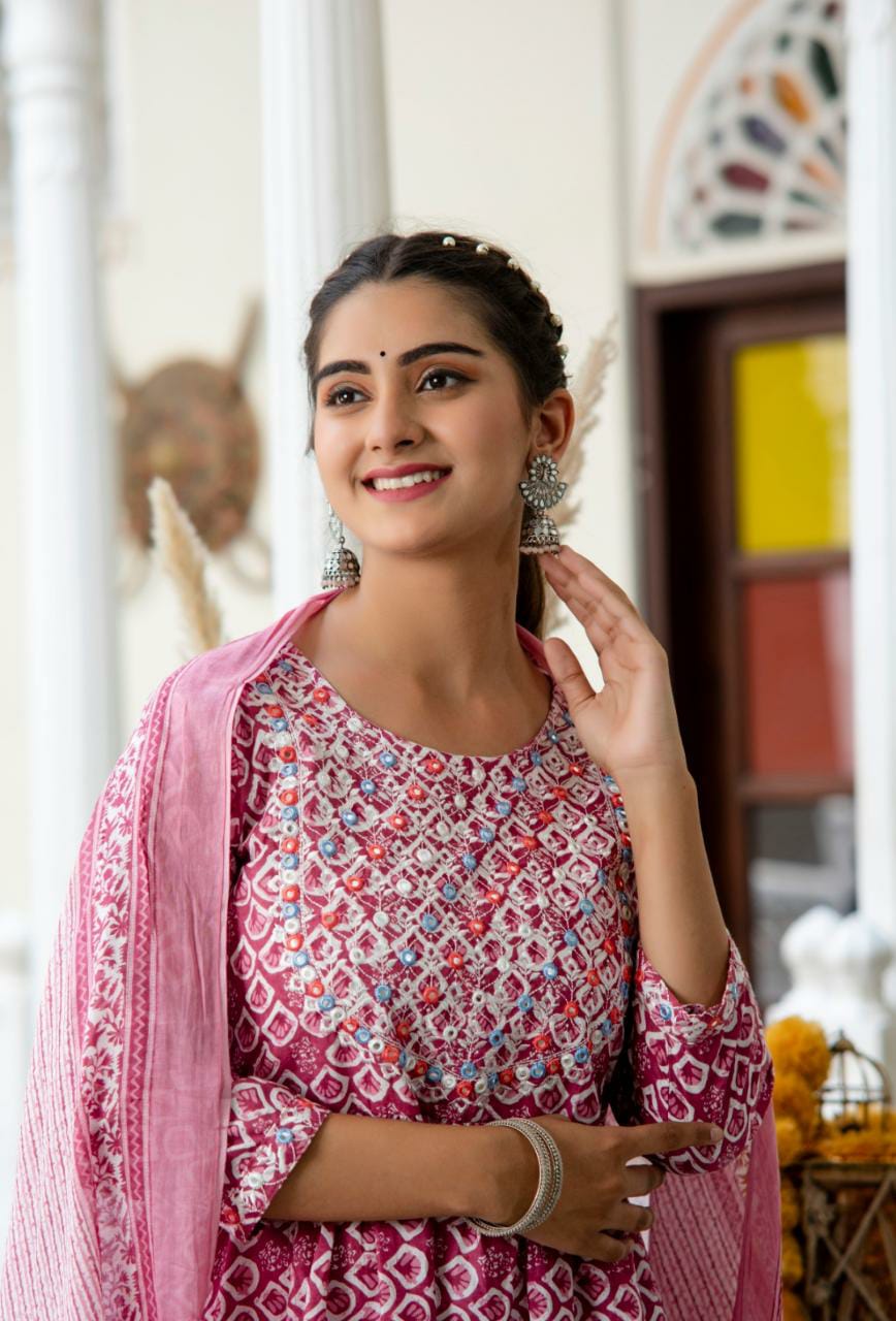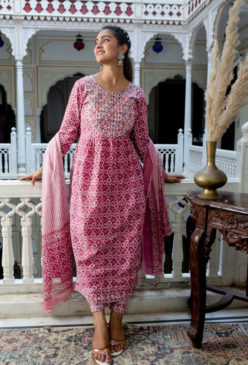 Cotton Neckline Embroidered Nyra Cut Suit Set