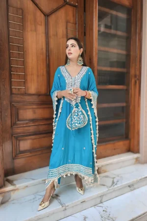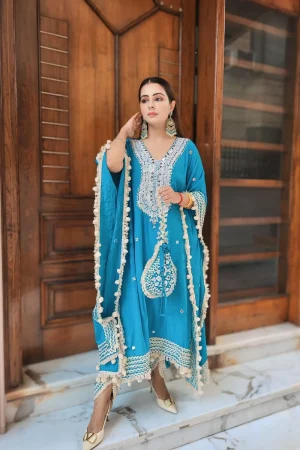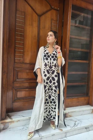 ₹6,495.00Original price was: ₹6,495.00.₹5,995.00Current price is: ₹5,995.00.Pure Crepe Hand Embroidery Kaftaan Set -