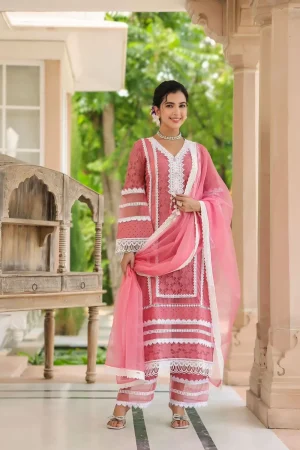₹3,595.00Original price was: ₹3,595.00.₹3,095.00Current price is: ₹3,095.00.Pure Cotton Fabric With Full Lace Detailing Paired with Soft Organza Dupatta -