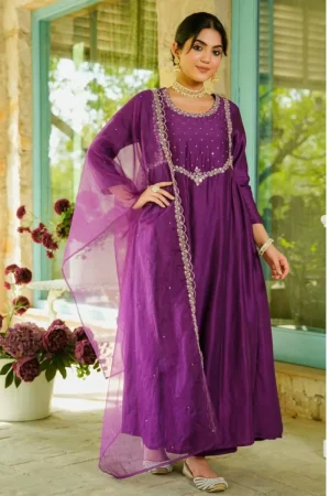 ₹3,795.00Original price was: ₹3,795.00.₹3,295.00Current price is: ₹3,295.00.Silk Hand Embroidered Luxury Suit Set -