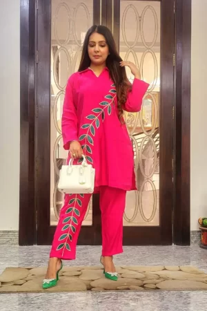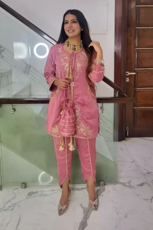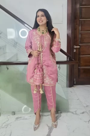Roman Silk Hand Embroidered Co-Ord Set (Pink)