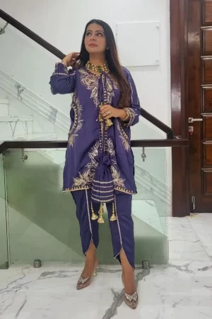 Cotton Silk Fabric Co-Ord Set (Purple)