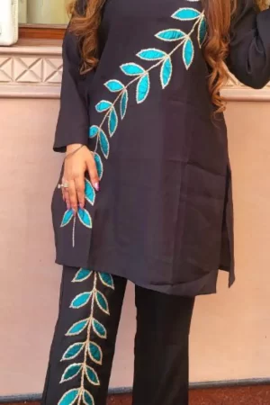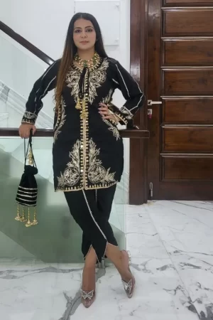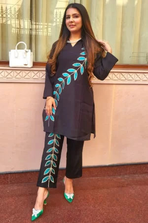 Roman Silk Hand Embroidered Co-Ord Set (Black)