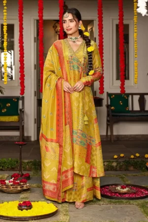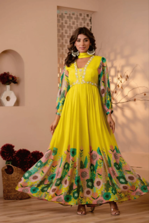 Quick viewSelect options This product has multiple variants. The options may be chosen on the product page Add to wishlistPure Chinon Yellowish Colour all Hand Embroidered Full Flare Anarkali Set