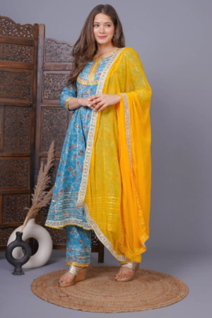 Quick viewSelect options This product has multiple variants. The options may be chosen on the product page Add to wishlistCotton Blue And Yellow Anarkali Suit Set