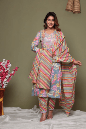 ₹4,599.00Original price was: ₹4,599.00.₹2,595.00Current price is: ₹2,595.00.Multi Colour Pure Cotton Suit Set -