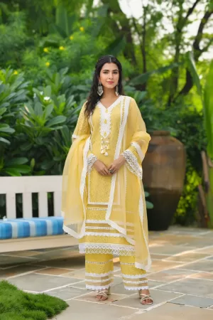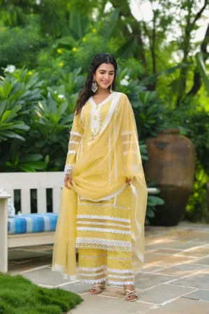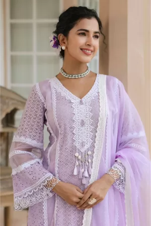 ₹3,595.00Original price was: ₹3,595.00.₹3,095.00Current price is: ₹3,095.00.Pure Cotton Fabric With Full Lace Detailing Paired with Soft Organza Dupatta -